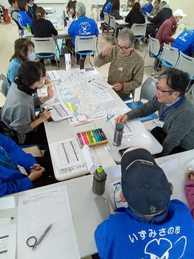 特に、職員にとっては、自治会や協定団体の取り組みを知る機会となり、社協職員として求められる知識を増やす成果を確認できました。なお、意見交換テーマの1つである「ボランティア不足」については、「生協や青年団、近隣大学などに声をかける」といった地域ネットワークを活かした取り組みの他、「未経験者の参加を増やす取り組みをする」「短時間で可能な活動もあることを伝える」「宿泊場所や貸し出しできる装備などの情報も募集時に発信する」などのアイデアがあがっていました。もう一方のテーマである、「ニーズの偏り(ニーズ把握)」について話し合ったグループでは、「平時から災害ボランティアセンターの役割や設置予定について地元の団体に発信していく(※)」「やさしい日本語など、外国人や障がい者の人にもわかりやすい情報発信を考える」などのアイデアがでていました。