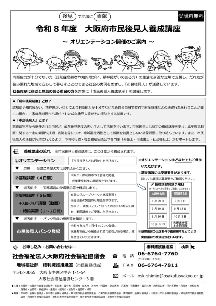 令和8年度の市民後見人養成講座オリエンテーションを開催します。