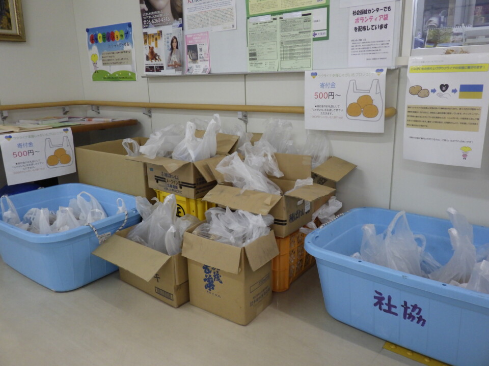 市内で農業をされているボランティアさんが、栽培している「じゃがいも」を販売した売上金を寄付したいとの思いがあり、社会福祉センターでも販売させていただく事になりました。