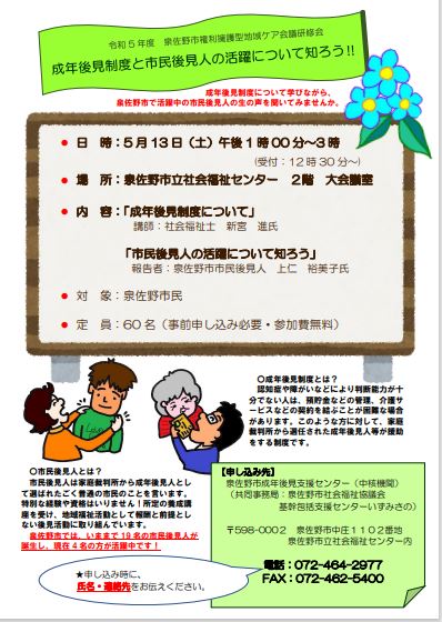 申込先:基幹包括支援センターいずみさの内 成年後見支援センター担当(TEL:072-464-2977)