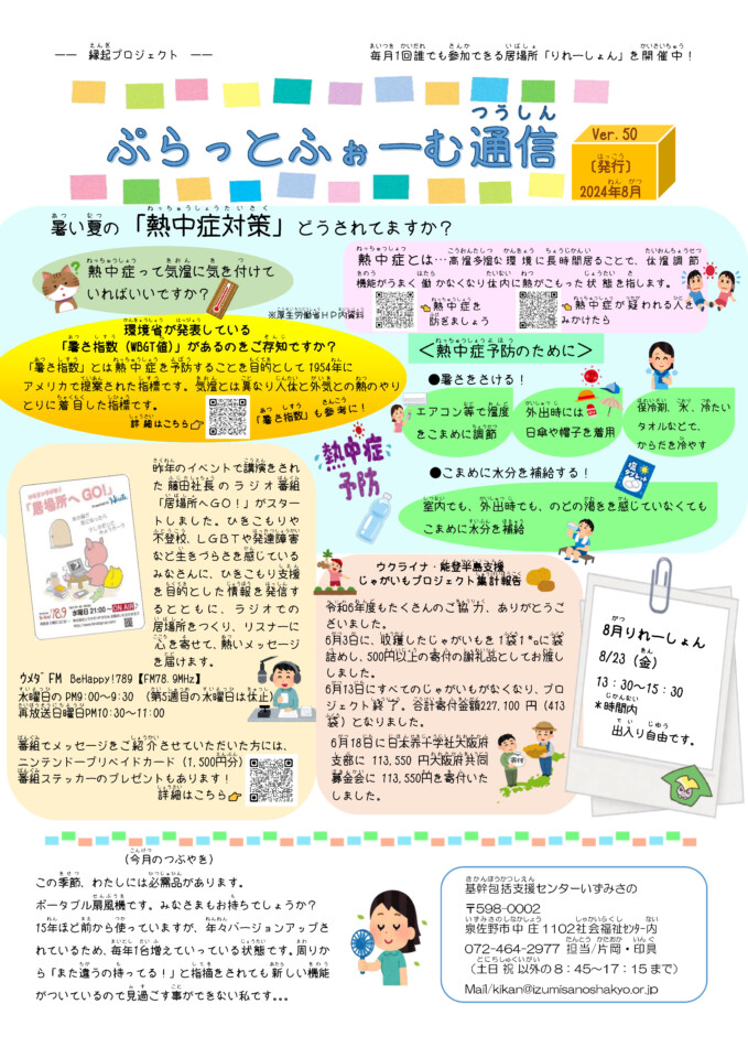 縁起プロジェクト ぷらっとふぉーむ通信8月号できました。