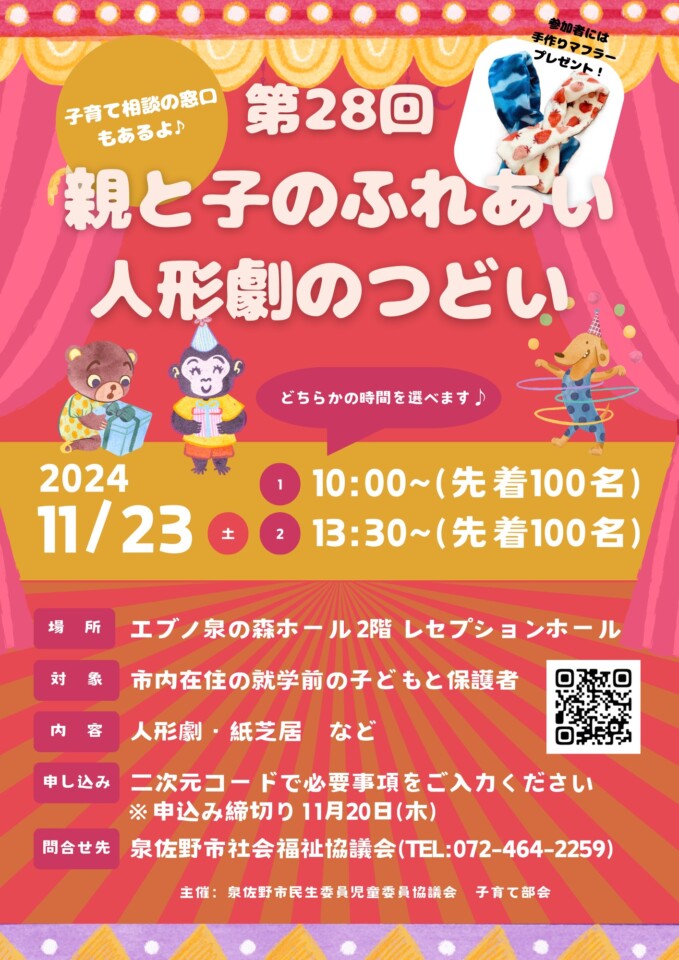 人形劇や紙芝居など、お子さんと一緒に楽しめる内容となっていますのでご参加お待ちしております(^^♪