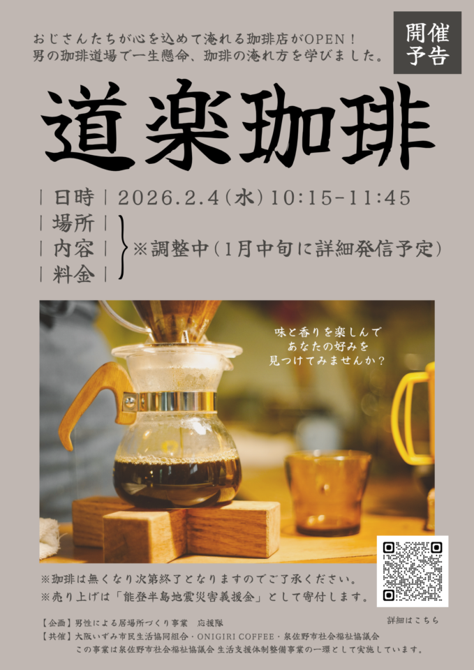 2026年【新春】地域の男性による珈琲飲み比べカフェ開催します☕